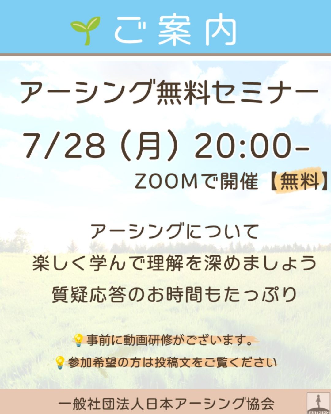 【無料オンラインアーシングセミナー】のご案内を更新しました 詳細はこちら