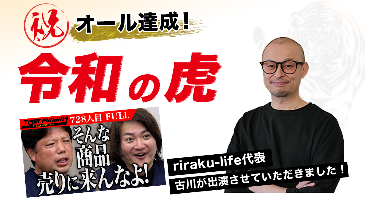 YouTubeチャンネル「令和の虎」 に出演いたしました🎥 おかげさまで 完全ALL を達成✨ 応援いただいた皆さま、ありがとうございました! ぜひ番組もご覧ください👇
