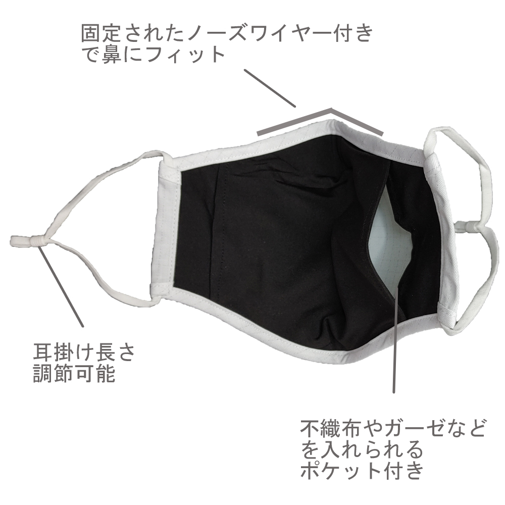 内側のポケットの中に不織布を入れれば高機能マスクにもなります。
