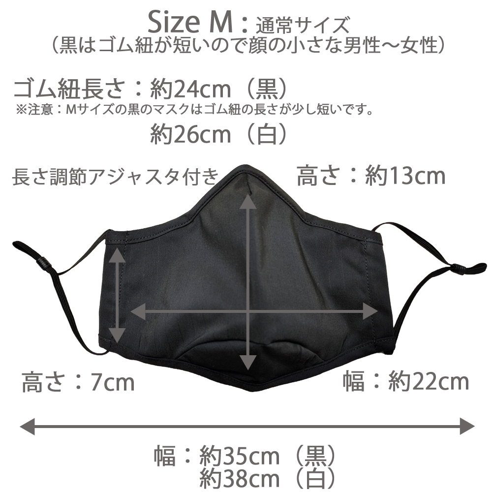 ※Mサイズは黒のゴム紐が少し短いため、顔の小さい男性〜女性サイズになります。