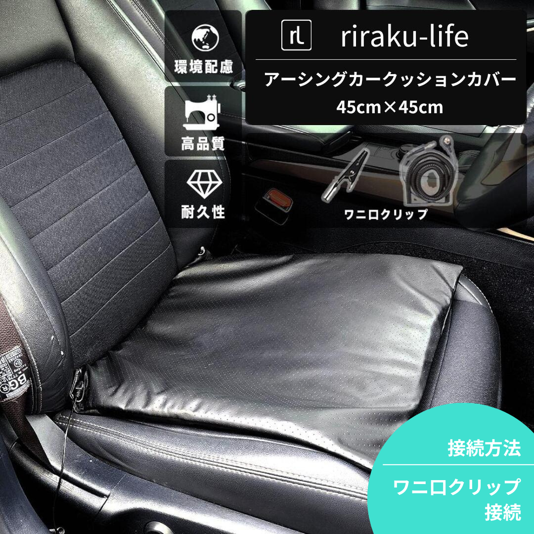 アーシング カークッションカバー(PUレザータイプ) 45cm×45cm [ワニ口接続] 車用 効果 電磁波対策 快適 理想のアース コード付き ドライブ アーシング健康法 健康グッズ リラクリフェ