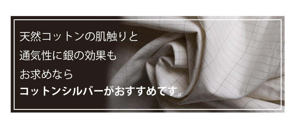 | お手入れ方法 | ・純銀なので銀イオンの効果で、抗菌、消臭、殺菌効果があり、基本洗濯は不要です。 ・洗濯をすることでも徐々に導電性がなくなってしまいます。 ・基本的には水洗いをお勧めします。 洗濯機での洗濯は可能です。ネットに入れて洗濯してください。 ・洗濯する際に、洗剤を使用する場合は、柔軟剤や静電気防止剤の入っていない中性洗剤を使用してください。柔軟剤、静電気防止剤は銀糸に膜を張ってしまう為、導電性がなくなってしまう原因になりますのでご注意ください。 |