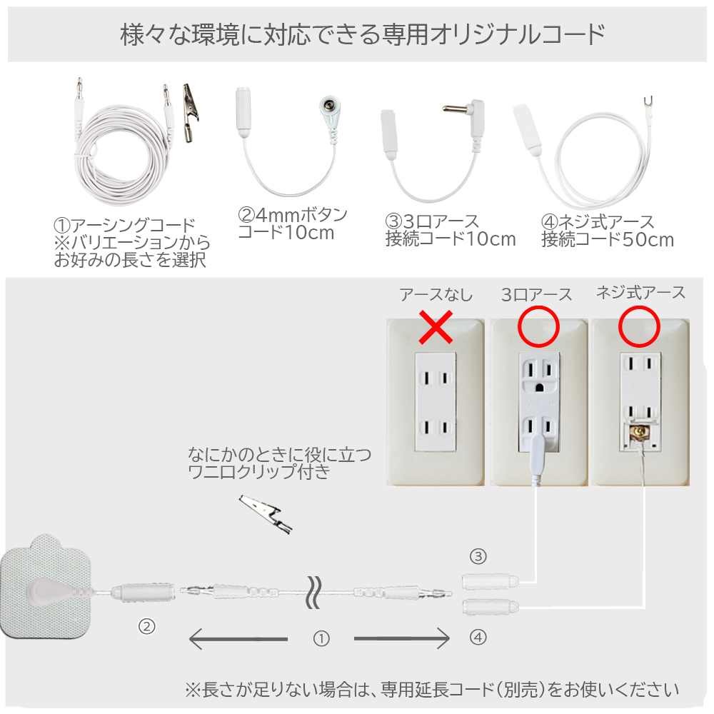 ※アーシングパッチを2つ、3つ同時に使用したい場合は、アーシングパッチ、靴下、グローブ分岐コードをお買い求めください。