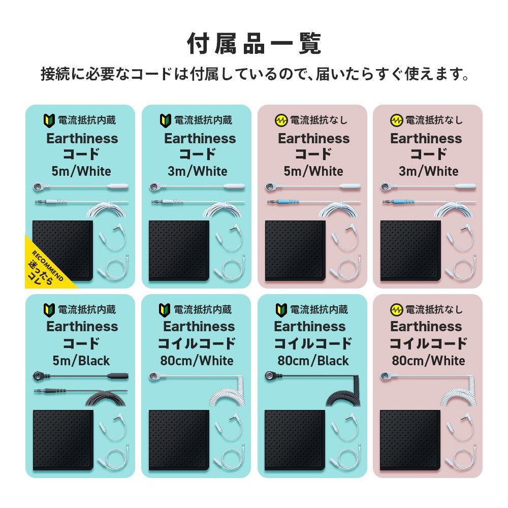 | 安全設計 | 付属のオリジナル専用コードは、日本のアース規格に準拠して家庭用に設計されています。耐久性のある銅線を使用し、長持ちする仕様です。おすすめは5mの抵抗内蔵コード(100kΩ抵抗内蔵)で、以下の特徴があります。