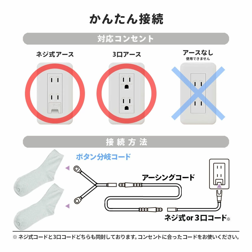 ※コードの長さが足りない場合は別売のアーシングシーツ延長コードをご利用ください。