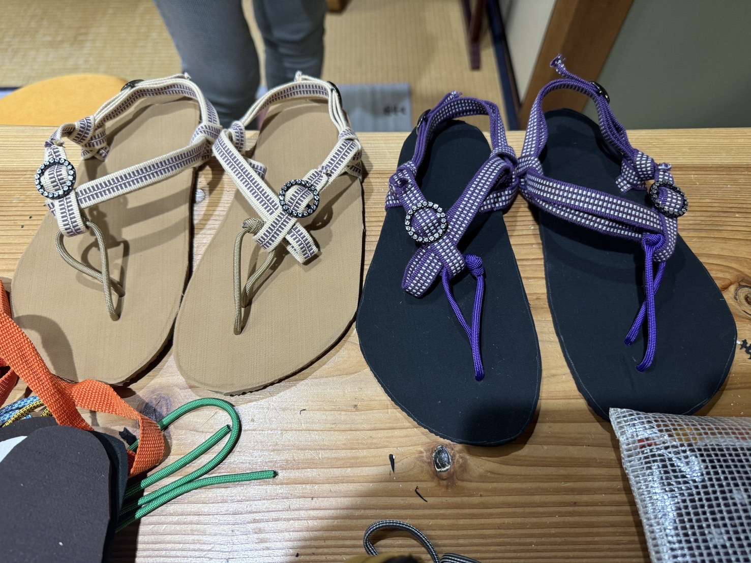 真田紐の色や柄、また各パーツの色は、谷中ワラーチさんとのメールでのやり取りにてお選びいただけます。