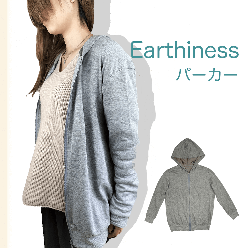 Earthiness Hoodie アーシネス パーカー グレー、ハイエンドユーザー向け電磁波対策グッズ!