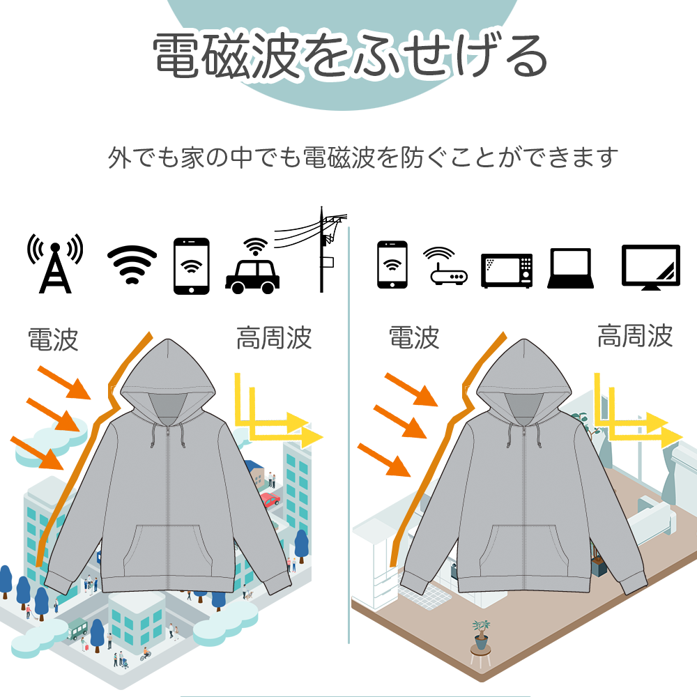 主な特徴 電磁波シールドとして使えるおしゃれなパーカーの登場です!