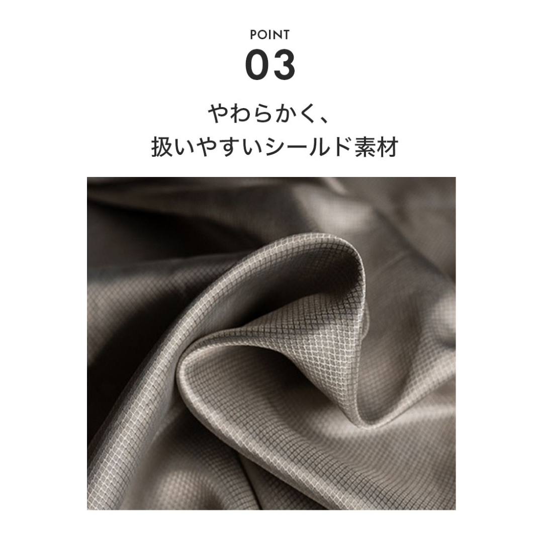 | 使用方法 | ・携帯電話を包んだり、床やベッドの下に敷いたり、壁に貼ったりして電磁波を防ぐことができます。 ・お財布やカードを包むことでスキミング対策にも有効です。 ・生地は柔らかく、裁断や縫製も可能です。 ・アースに接続することで電場の除去が可能です。当社の専用コード(別売り)をお使いください。 |