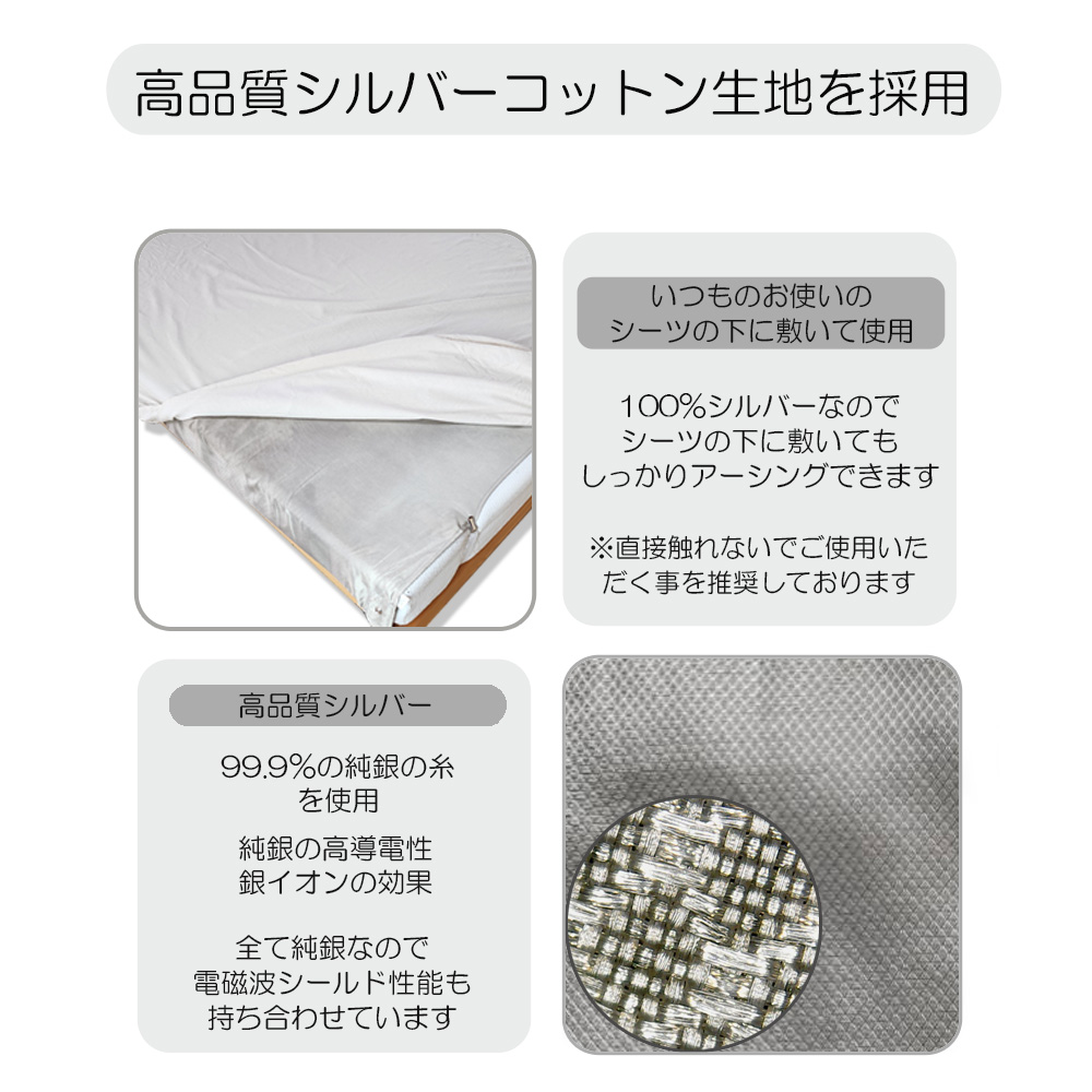 【アウトレット】Earthiness Sheets アーシネスハーフシーツ ピュアシルバー 100% 純銀EMFシート  210cm×250cm コードセット