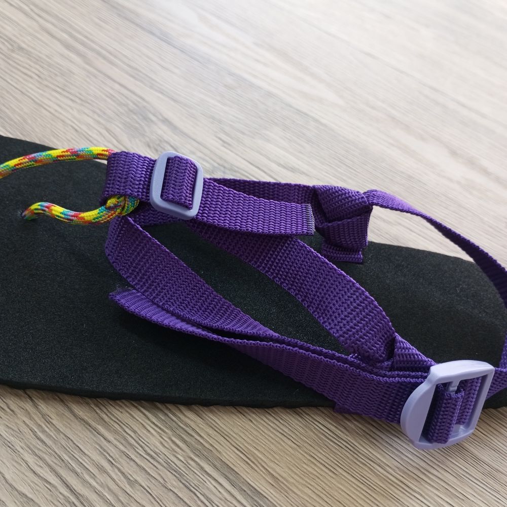 👉 ワラーチの履き方・調整ガイド - ソールに炭素を使用している為、足の裏が黒くなる場合がございます。