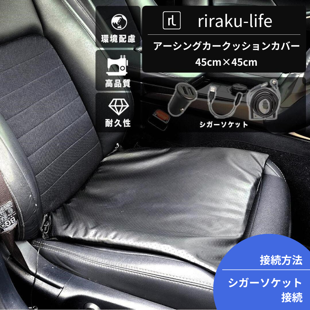 アーシング カークッションカバー (PUレザータイプ) 45cm×45cm [シガーソケット接続] 車用 効果 電磁波対策 快適 理想のアース コード付き ドライブ アーシング健康法 健康グッズ リラクリフェ