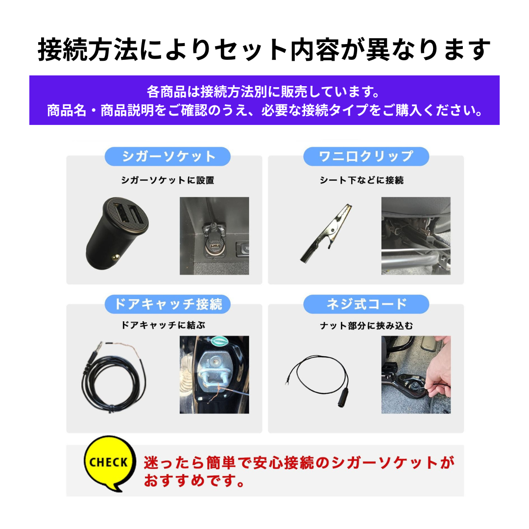 ※必ず付属の専用のアース接続USBシガーソケットを使用して接続してください。
