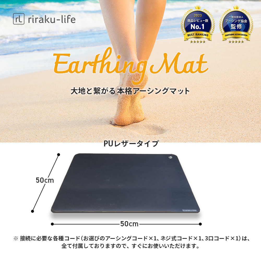 機能性については問題がございませんので、お安くお買い求めができるのでおすすめです☆※コードは新品の物となっています。リラクリフェのオリジナル Earthiness Mat アーシネスマット (PUレザータイプ)は、上質なPUレザーを使用した、本革のような柔らかい肌触りを提供するマットです。このマットは、特許技術を採用し、アーシングを考慮した設計により、リラックスできる快適な環境づくりをサポートします。